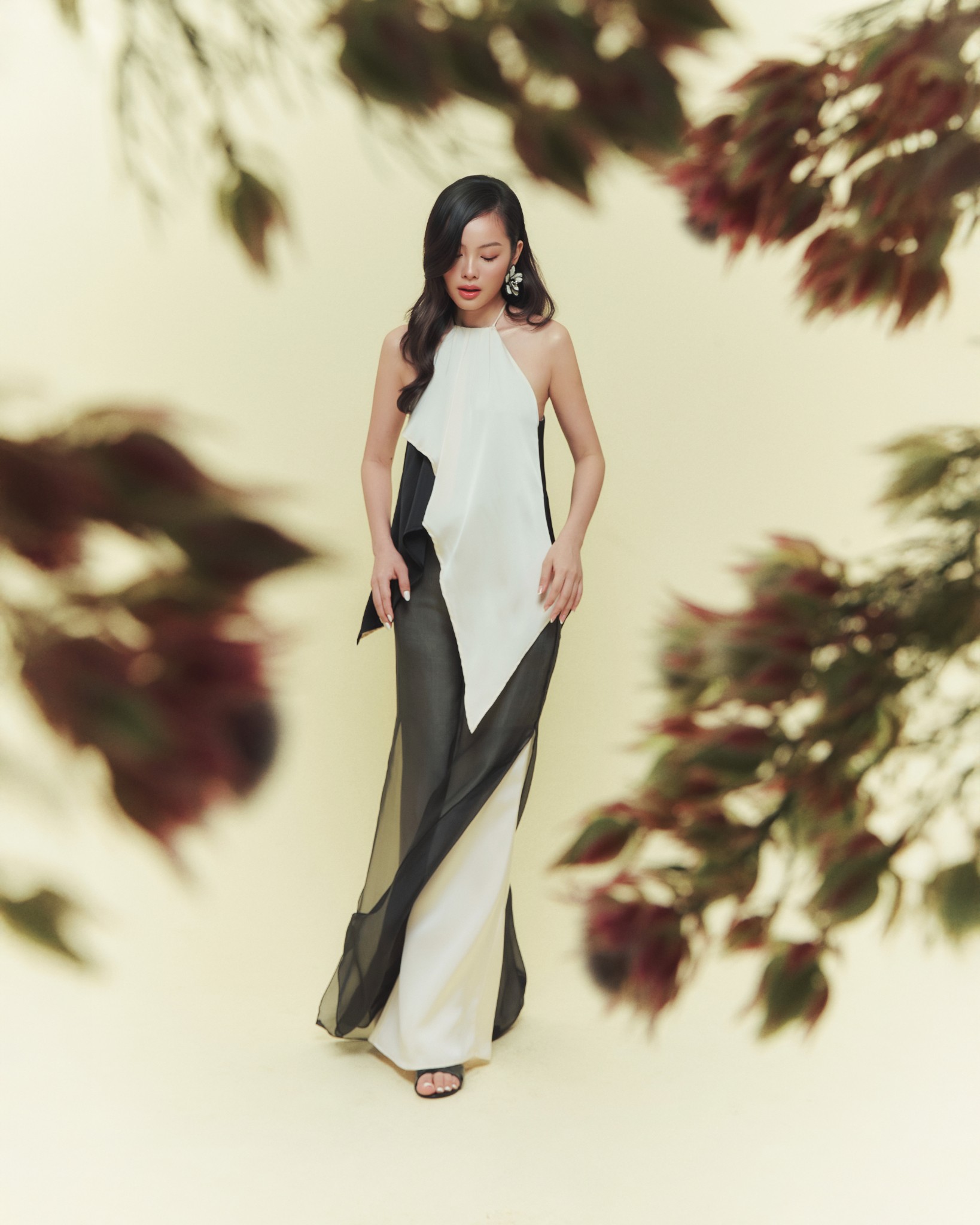 Lấy cảm hứng từ triết lý Á Đông về sự cân bằng âm – dương, bộ sưu tập khai thác những cặp màu tương phản: đỏ – nâu, vàng – xanh, kem – đen. Khi đặt cạnh nhau, những sắc độ tưởng chừng đối lập ấy không đối chọi, mà dịu lại, mềm mại và hài hòa hơn.